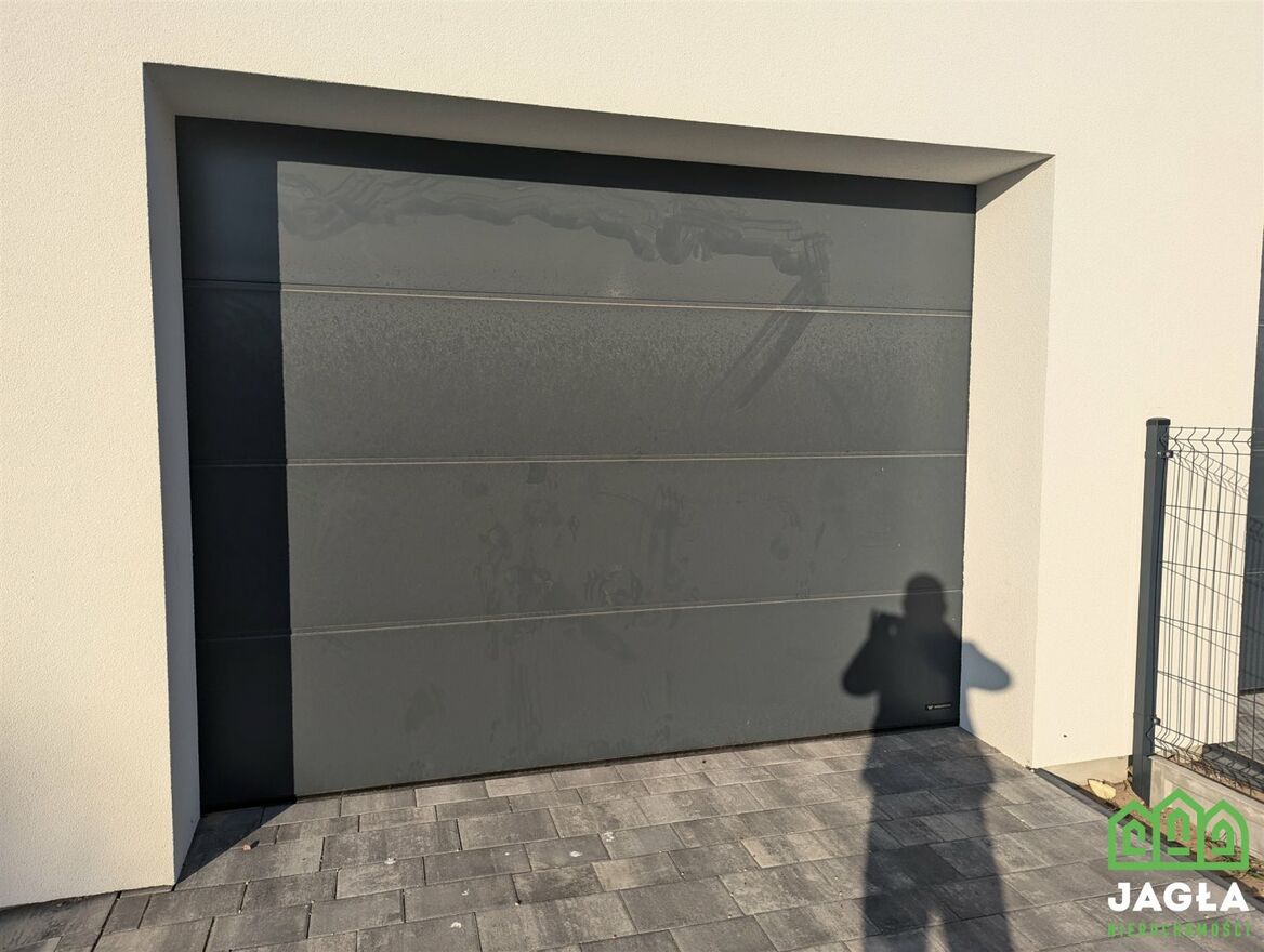 Brama garażowa z napędem, wyprowadzone okablowanie do napędu bram wjazdowych zewnętrznych.
